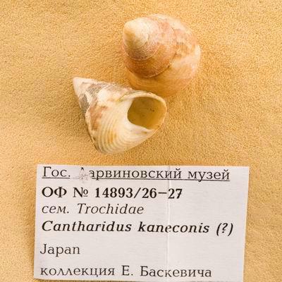 Морской брюхоногий моллюск. Cantharidus kaneconis. Классификация: Моллюски Mollusca, Брюхоногие Gastropoda, Archaeogastropoda, Trochidae