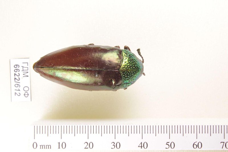 Сухое насекомое. Златка. Sternocera chrysis (Fabricius, 1775). Классификация: Членистоногие Arthropoda, Насекомые Insecta, Жуки Coleoptera, Златки Buprestidae