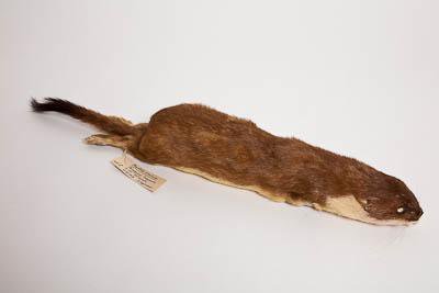 Тушка с черепом. Горностай. Mustela erminea L.,1758. Классификация: Хордовые Chordata, Позвоночные Vertebrata, Млекопитающие Mammalia, Хищные Carnivora, Куньи Mustelidae, Горностай Mustela erminea L.,1758