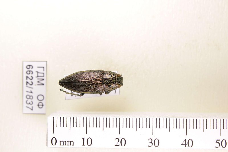 Сухое насекомое. Златка. Lampetis bioculata (Olivier, 1790). Классификация: Членистоногие Arthropoda, Насекомые Insecta, Жуки Coleoptera, Златки Buprestidae