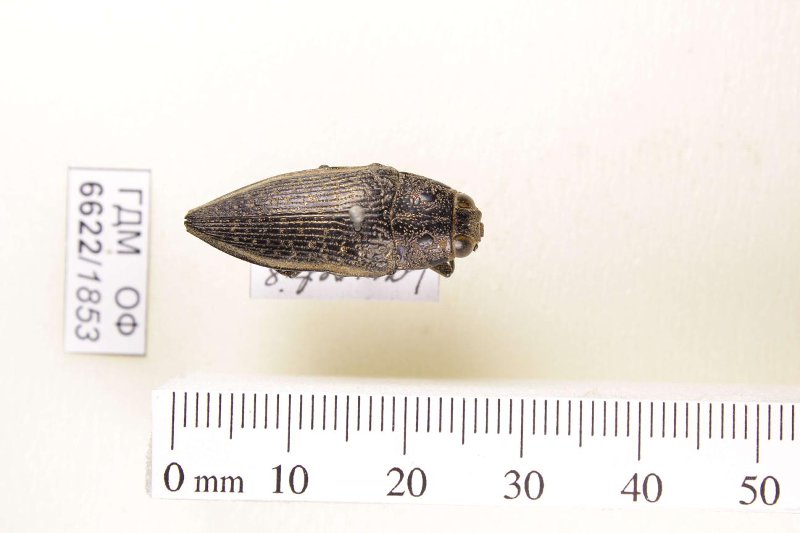Сухое насекомое. Златка. Lampetis bioculata (Olivier, 1790). Классификация: Членистоногие Arthropoda, Насекомые Insecta, Жуки Coleoptera, Златки Buprestidae