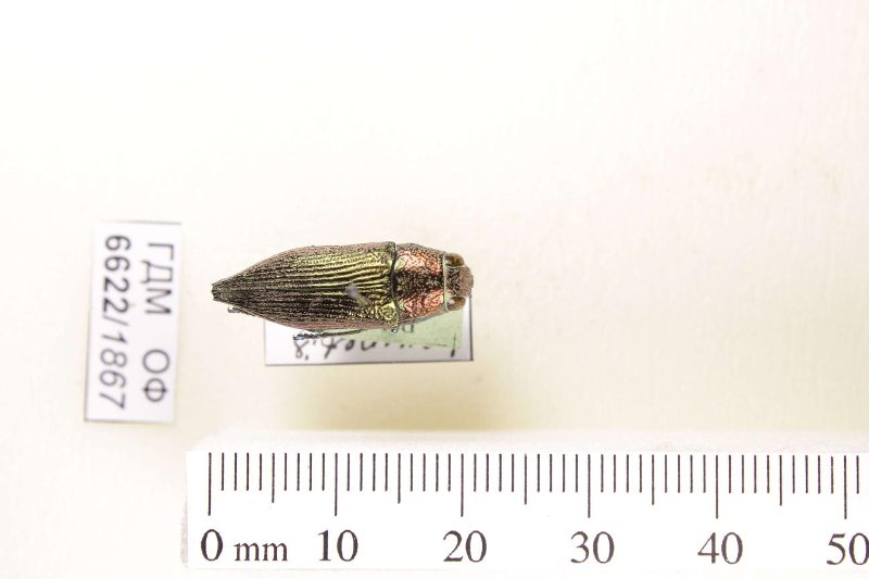 Сухое насекомое. Златка. Lampetis purpureomicans (Kerremans, 1893). Классификация: Членистоногие Arthropoda, Насекомые Insecta, Жуки Coleoptera, Златки Buprestidae