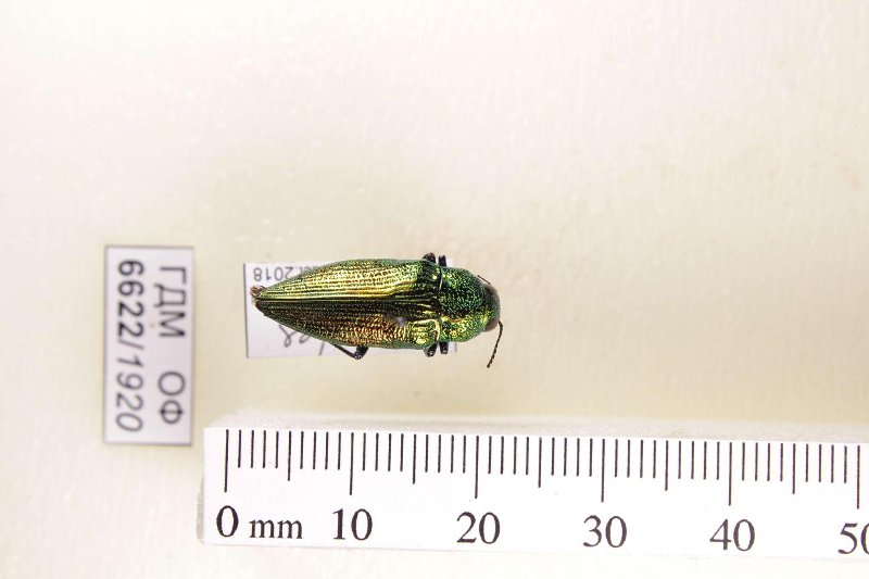 Сухое насекомое. Златка. Hilarotes chalcoptera (Jacquelin du Val, 1857). Классификация: Членистоногие Arthropoda, Насекомые Insecta, Жуки Coleoptera, Златки Buprestidae