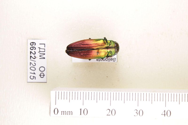 Сухое насекомое. Златка. Belionota sumptuosa Gory et Laporte, 1838. Классификация: Членистоногие Arthropoda, Насекомые Insecta, Жуки Coleoptera, Златки Buprestidae
