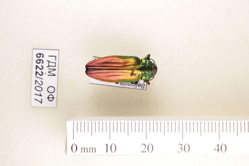 Сухое насекомое. Златка. Belionota sumptuosa Gory et Laporte, 1838. Классификация: Членистоногие Arthropoda, Насекомые Insecta, Жуки Coleoptera, Златки Buprestidae