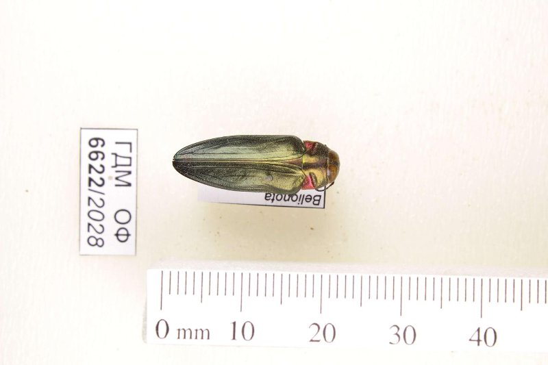 Сухое насекомое. Златка. Belionota prasina (Thunberg, 1789). Классификация: Членистоногие Arthropoda, Насекомые Insecta, Жуки Coleoptera, Златки Buprestidae