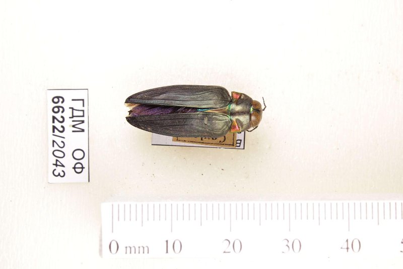 Сухое насекомое. Златка. Belionota prasina (Thunberg, 1789). Классификация: Членистоногие Arthropoda, Насекомые Insecta, Жуки Coleoptera, Златки Buprestidae