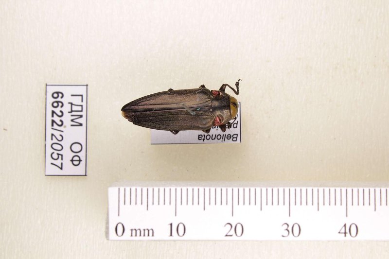 Сухое насекомое. Златка. Belionota prasina (Thunberg, 1789). Классификация: Членистоногие Arthropoda, Насекомые Insecta, Жуки Coleoptera, Златки Buprestidae