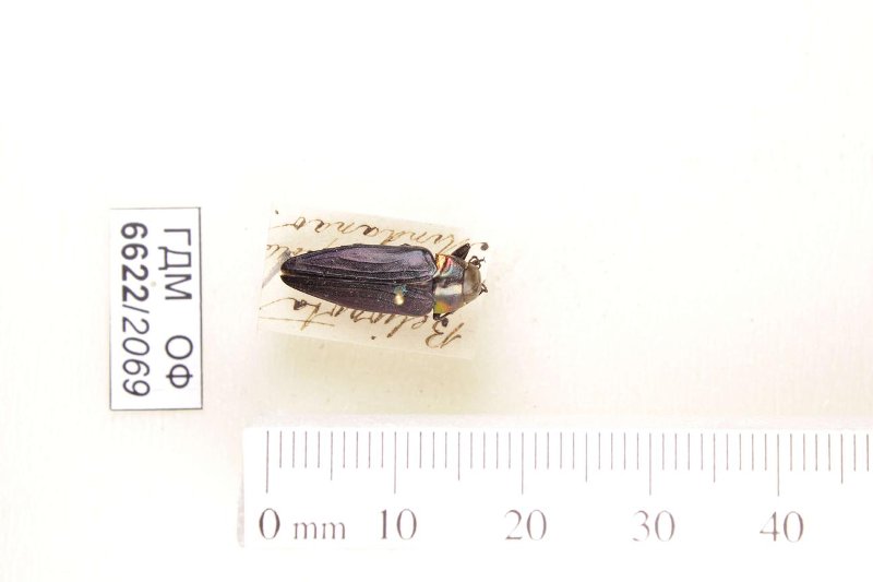 Сухое насекомое. Златка. Belionota prasina (Thunberg, 1789). Классификация: Членистоногие Arthropoda, Насекомые Insecta, Жуки Coleoptera, Златки Buprestidae