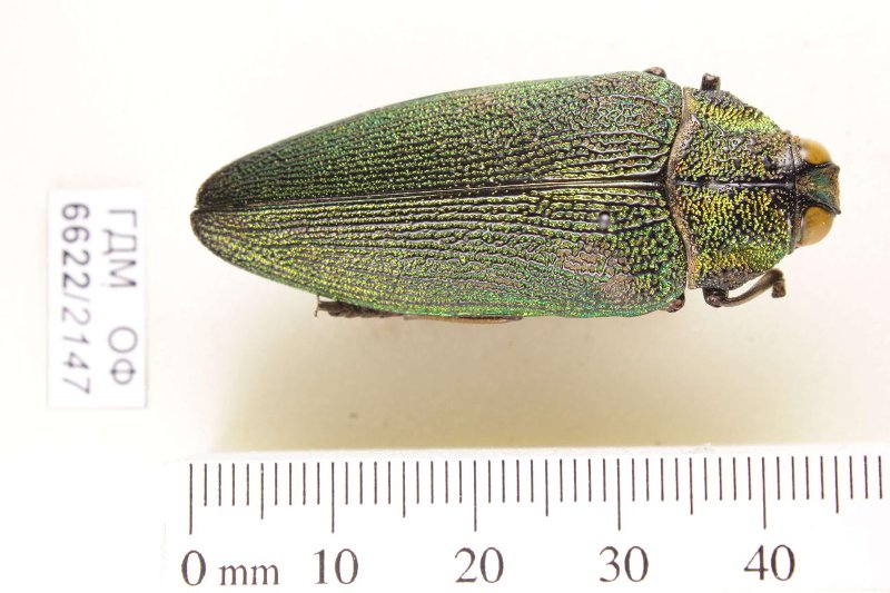 Сухое насекомое. Златка. Steraspis speciosa (Klug, 1829). Классификация: Членистоногие Arthropoda, Насекомые Insecta, Жуки Coleoptera, Златки Buprestidae
