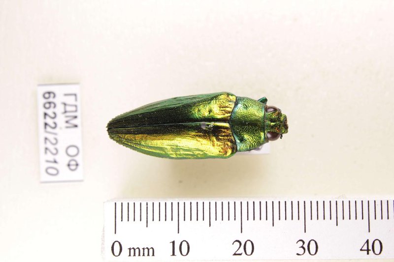 Сухое насекомое. Златка. Philocteanus maitlandi Lansberge, 1883. Классификация: Членистоногие Arthropoda, Насекомые Insecta, Жуки Coleoptera, Златки Buprestidae