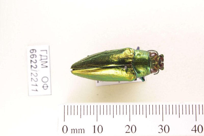 Сухое насекомое. Златка. Philocteanus maitlandi Lansberge, 1883. Классификация: Членистоногие Arthropoda, Насекомые Insecta, Жуки Coleoptera, Златки Buprestidae