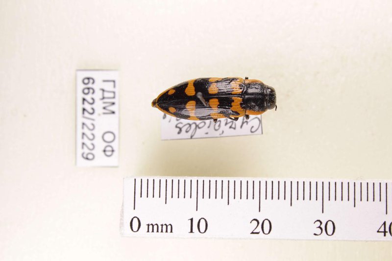 Сухое насекомое. Златка. Cyrioides imperialis (Fabricius, 1801). Классификация: Членистоногие Arthropoda, Насекомые Insecta, Жуки Coleoptera, Златки Buprestidae