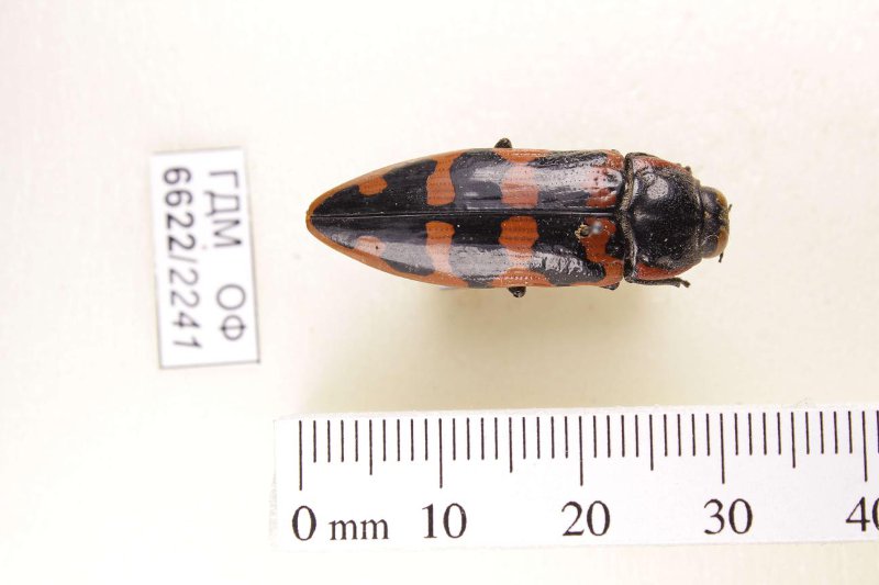 Сухое насекомое. Златка. Cyrioides imperialis (Fabricius, 1801). Классификация: Членистоногие Arthropoda, Насекомые Insecta, Жуки Coleoptera, Златки Buprestidae