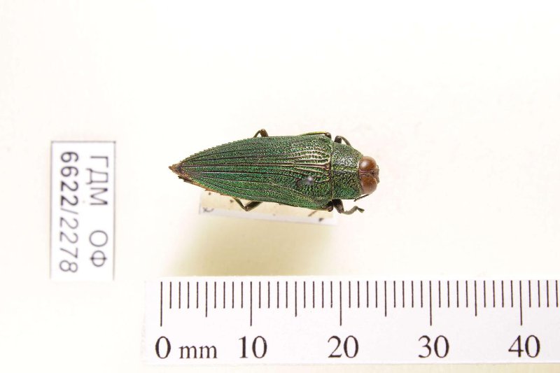 Сухое насекомое. Златка. Evides pubiventris (Laporte et Gory, 1835). Классификация: Членистоногие Arthropoda, Насекомые Insecta, Жуки Coleoptera, Златки Buprestidae
