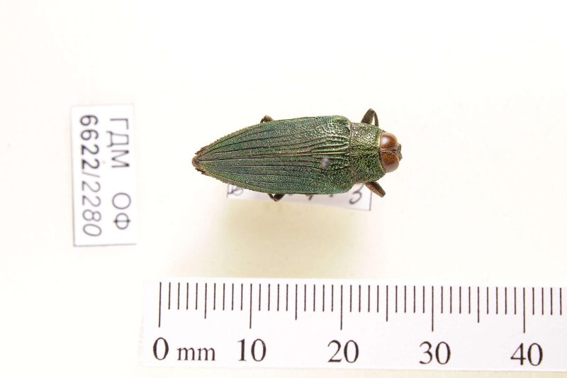 Сухое насекомое. Златка. Evides pubiventris (Laporte et Gory, 1835). Классификация: Членистоногие Arthropoda, Насекомые Insecta, Жуки Coleoptera, Златки Buprestidae