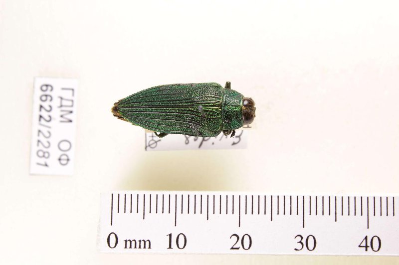 Сухое насекомое. Златка. Evides pubiventris (Laporte et Gory, 1835). Классификация: Членистоногие Arthropoda, Насекомые Insecta, Жуки Coleoptera, Златки Buprestidae