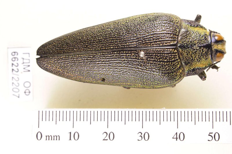 Сухое насекомое. Златка. Steraspis colossa Harold, 1878. Классификация: Членистоногие Arthropoda, Насекомые Insecta, Жуки Coleoptera, Златки Buprestidae