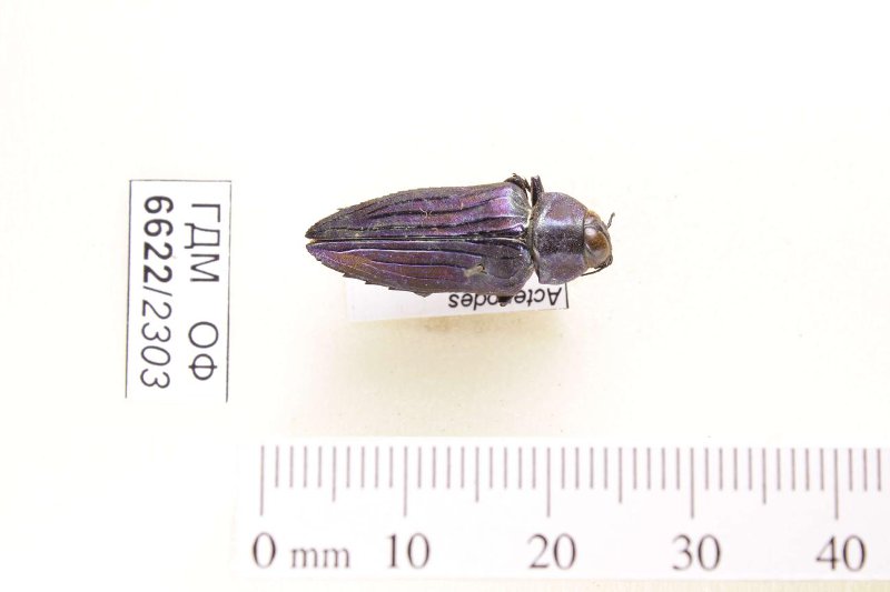 Сухое насекомое. Златка. Actenodes chalybaeitarsis (Chevrolat, 1834). Классификация: Членистоногие Arthropoda, Насекомые Insecta, Жуки Coleoptera, Златки Buprestidae