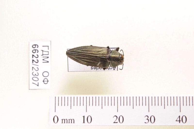Сухое насекомое. Златка. Actenodes chalybaeitarsis (Chevrolat, 1834). Классификация: Членистоногие Arthropoda, Насекомые Insecta, Жуки Coleoptera, Златки Buprestidae