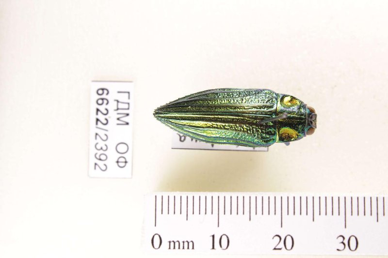 Сухое насекомое. Златка. Chrysodema radians (Guérin-Ménéville, 1830). Классификация: Членистоногие Arthropoda, Насекомые Insecta, Жуки Coleoptera, Златки Buprestidae
