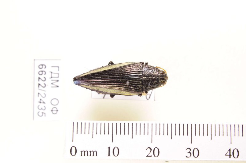 Сухое насекомое. Златка. Paracupta flaviventris (Heer, 1868). Классификация: Членистоногие Arthropoda, Насекомые Insecta, Жуки Coleoptera, Златки Buprestidae