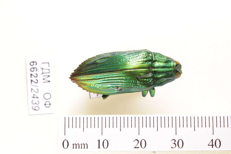 Сухое насекомое. Златка. Paracupta sulcata Saunders, 1869. Классификация: Членистоногие Arthropoda, Насекомые Insecta, Жуки Coleoptera, Златки Buprestidae