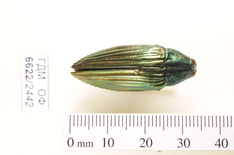 Сухое насекомое. Златка. Paracupta sulcata Saunders, 1869. Классификация: Членистоногие Arthropoda, Насекомые Insecta, Жуки Coleoptera, Златки Buprestidae
