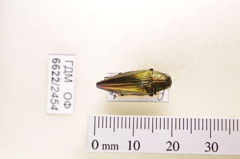 Сухое насекомое. Златка. Paracupta prasina (Gräffe, 1868). Классификация: Членистоногие Arthropoda, Насекомые Insecta, Жуки Coleoptera, Златки Buprestidae
