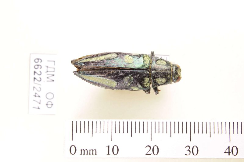 Сухое насекомое. Златка. Chrysodema lottinii (Boisduval, 1835). Классификация: Членистоногие Arthropoda, Насекомые Insecta, Жуки Coleoptera, Златки Buprestidae