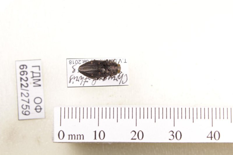 Сухое насекомое. Златка. Chrysobothris affinis (Fabricius, 1794). Классификация: Членистоногие Arthropoda, Насекомые Insecta, Жуки Coleoptera, Златки Buprestidae