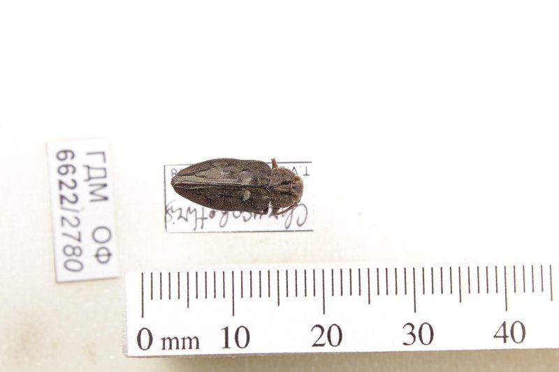 Сухое насекомое. Златка. Chrysobothris dentipes (Germar, 1824). Классификация: Членистоногие Arthropoda, Насекомые Insecta, Жуки Coleoptera, Златки Buprestidae