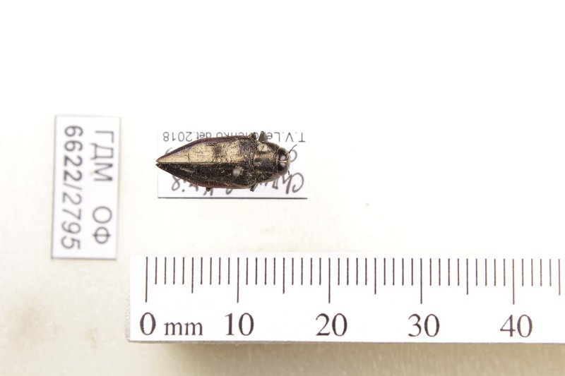 Сухое насекомое. Златка. Chrysobothris acutipennis Chevrolat, 1835. Классификация: Членистоногие Arthropoda, Насекомые Insecta, Жуки Coleoptera, Златки Buprestidae