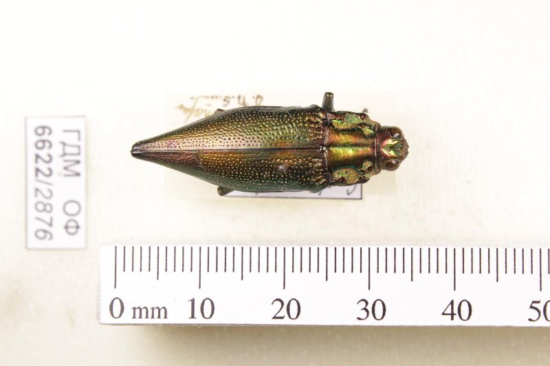 Сухое насекомое. Златка. Cyphogastra dissimilis Kerremans, 1895. Классификация: Членистоногие Arthropoda, Насекомые Insecta, Жуки Coleoptera, Златки Buprestidae