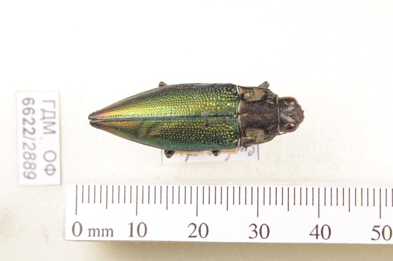 Сухое насекомое. Златка. Cyphogastra semipurpurea (Laporte et Gory, 1835). Классификация: Членистоногие Arthropoda, Насекомые Insecta, Жуки Coleoptera, Златки Buprestidae