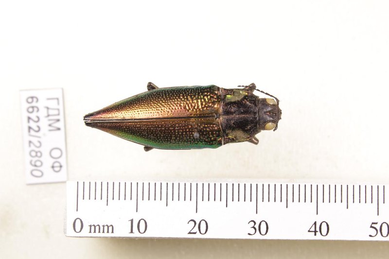 Сухое насекомое. Златка. Cyphogastra semipurpurea (Laporte et Gory, 1835). Классификация: Членистоногие Arthropoda, Насекомые Insecta, Жуки Coleoptera, Златки Buprestidae