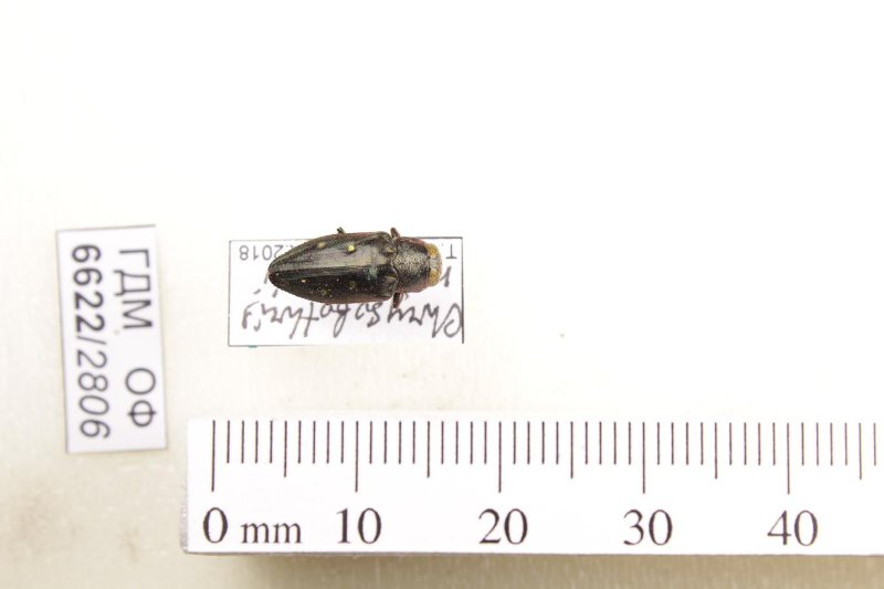 Сухое насекомое. Златка. Chrysobothris mastersii Macleay, 1872. Классификация: Членистоногие Arthropoda, Насекомые Insecta, Жуки Coleoptera, Златки Buprestidae