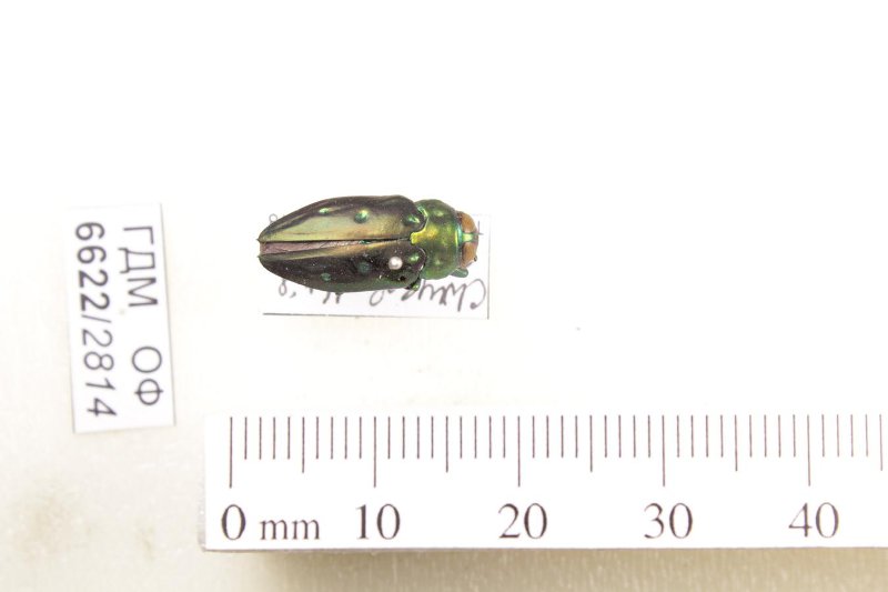 Сухое насекомое. Златка. Chrysobothris sexpunctata (Fabricius, 1801). Классификация: Членистоногие Arthropoda, Насекомые Insecta, Жуки Coleoptera, Златки Buprestidae
