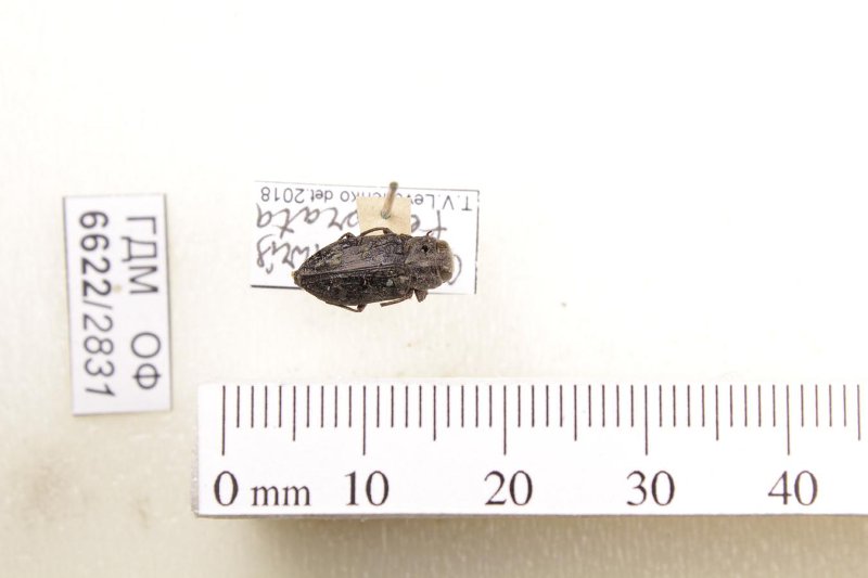 Сухое насекомое. Златка. Chrysobothris femorata (Olivier, 1790). Классификация: Членистоногие Arthropoda, Насекомые Insecta, Жуки Coleoptera, Златки Buprestidae
