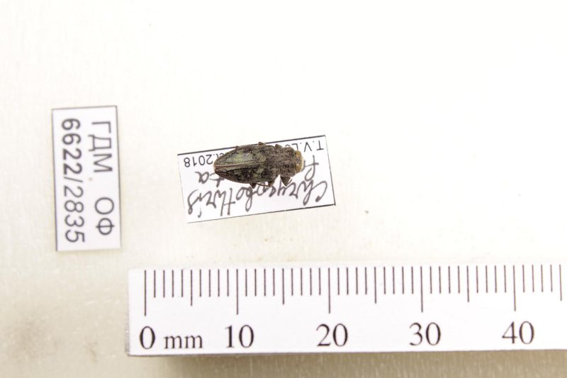 Сухое насекомое. Златка. Chrysobothris femorata (Olivier, 1790). Классификация: Членистоногие Arthropoda, Насекомые Insecta, Жуки Coleoptera, Златки Buprestidae