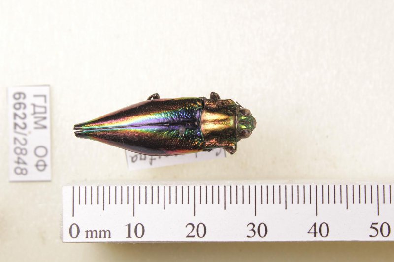 Сухое насекомое. Златка. Cyphogastra javanica Saunders, 1871. Классификация: Членистоногие Arthropoda, Насекомые Insecta, Жуки Coleoptera, Златки Buprestidae