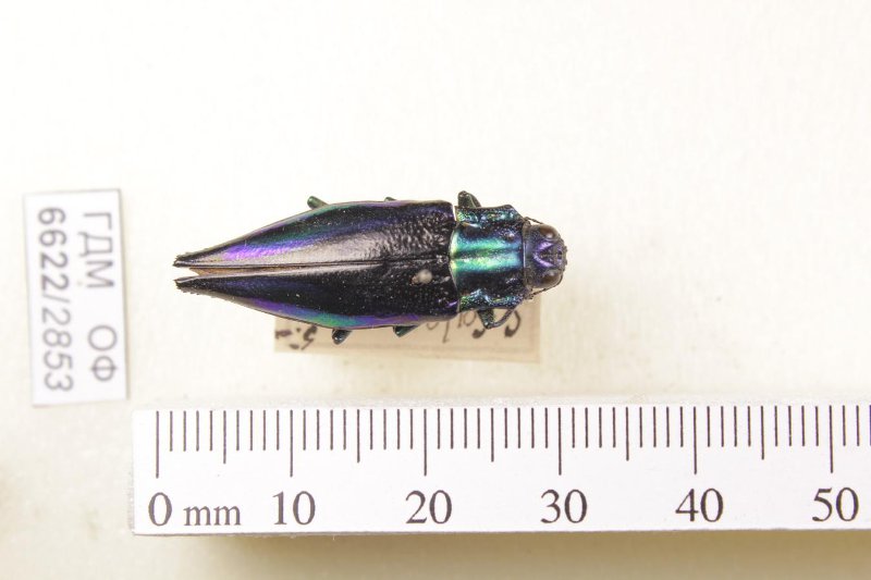 Сухое насекомое. Златка. Cyphogastra calepyga (Thomson, 1857). Классификация: Членистоногие Arthropoda, Насекомые Insecta, Жуки Coleoptera, Златки Buprestidae