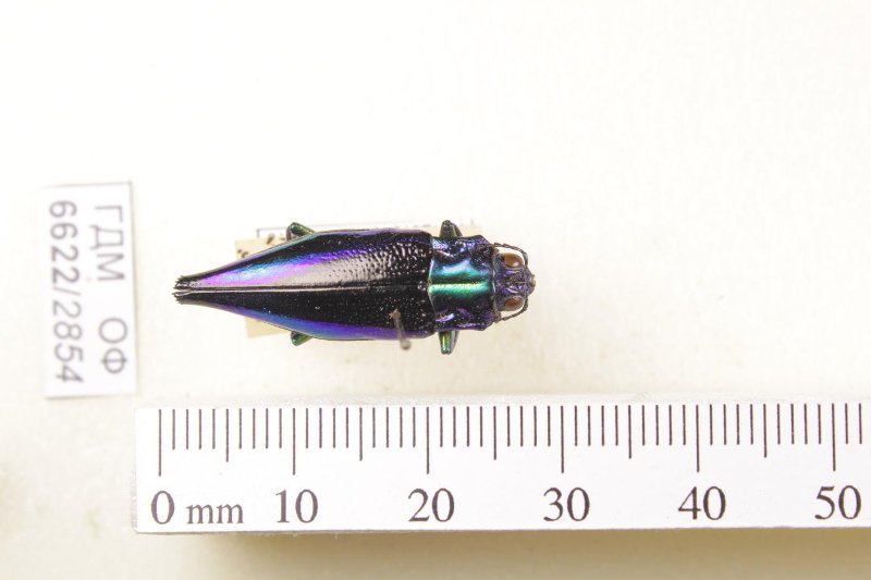 Сухое насекомое. Златка. Cyphogastra calepyga (Thomson, 1857). Классификация: Членистоногие Arthropoda, Насекомые Insecta, Жуки Coleoptera, Златки Buprestidae