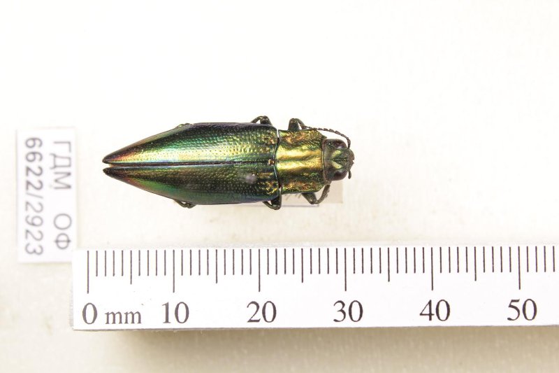 Сухое насекомое. Златка. Cyphogastra satrapa (Schönherr, 1817). Классификация: Членистоногие Arthropoda, Насекомые Insecta, Жуки Coleoptera, Златки Buprestidae