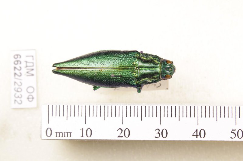 Сухое насекомое. Златка. Cyphogastra waterhousei Théry, 1926. Классификация: Членистоногие Arthropoda, Насекомые Insecta, Жуки Coleoptera, Златки Buprestidae