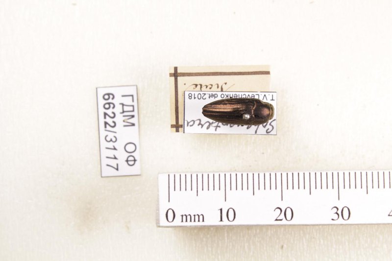 Сухое насекомое. Златка. Sphenoptera rauca (Fabricius, 1787). Классификация: Членистоногие Arthropoda, Насекомые Insecta, Жуки Coleoptera, Златки Buprestidae