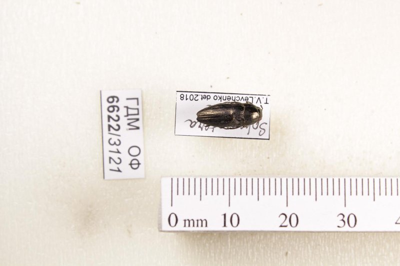 Сухое насекомое. Златка. Sphenoptera rauca (Fabricius, 1787). Классификация: Членистоногие Arthropoda, Насекомые Insecta, Жуки Coleoptera, Златки Buprestidae