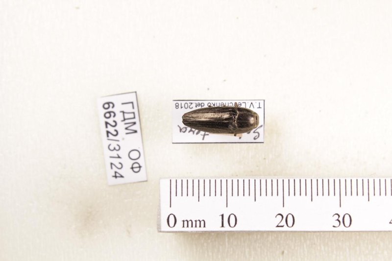 Сухое насекомое. Златка. Sphenoptera rauca (Fabricius, 1787). Классификация: Членистоногие Arthropoda, Насекомые Insecta, Жуки Coleoptera, Златки Buprestidae