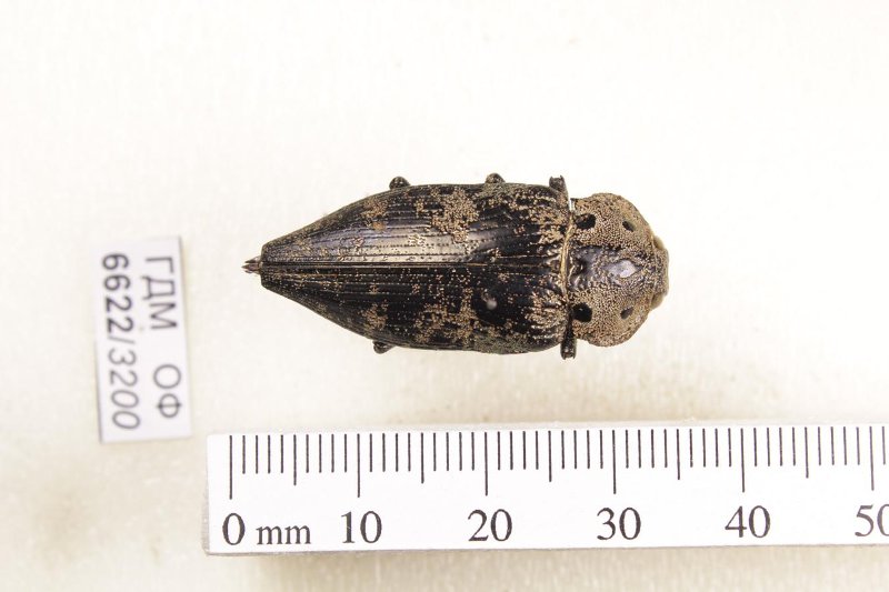 Сухое насекомое. Златка. Capnodis miliaris (Klug, 1829). Классификация: Членистоногие Arthropoda, Насекомые Insecta, Жуки Coleoptera, Златки Buprestidae