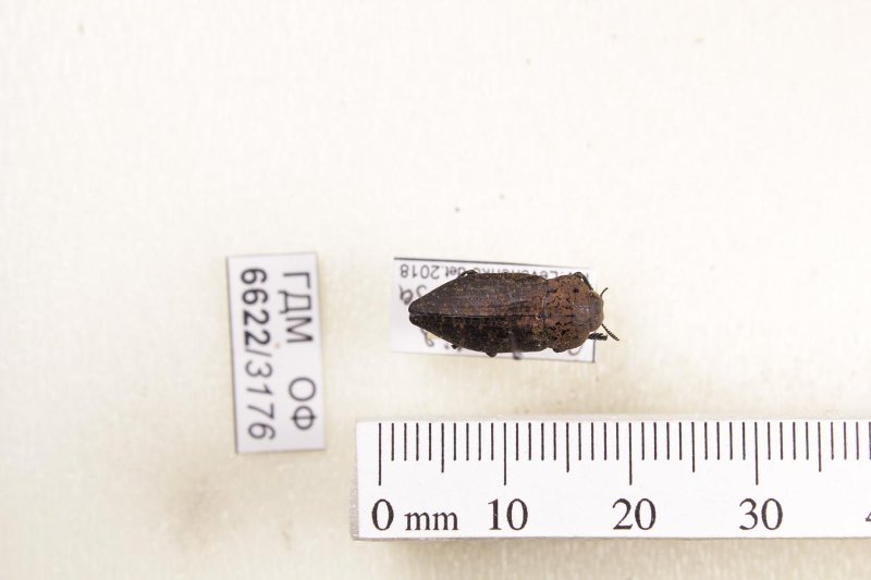Сухое насекомое. Златка. Capnodis tenebricosa (Olivier, 1790). Классификация: Членистоногие Arthropoda, Насекомые Insecta, Жуки Coleoptera, Златки Buprestidae
